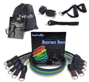 - Resistance Bands – these bands can actually be tense and work just as good as weights. There are quite a few different versions both rubber and polygon shown below. These range from 20-40lbs but you can do a loop and increase the weight quite a bit. The rubber ones you can also stack to equal up to 110lbs in weight.