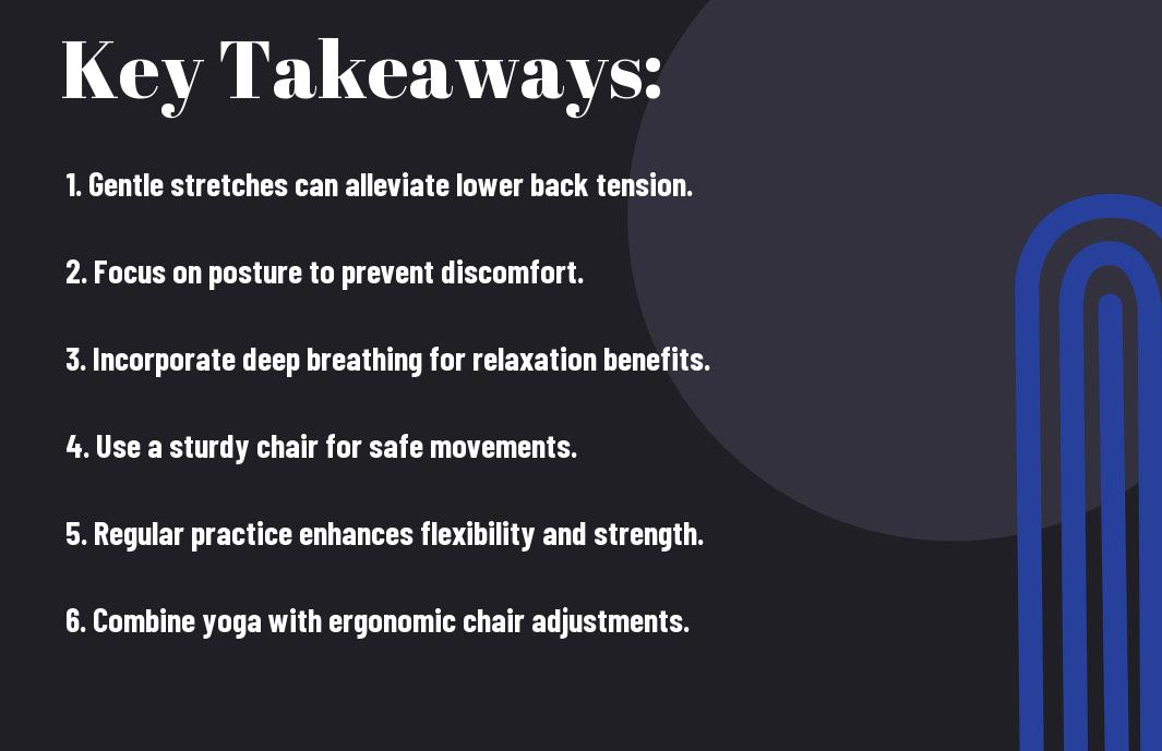 After integrating chair yoga into your day, you may notice a significant improvement in your flexibility and mobility. These exercises encourage your muscles and joints to work together more efficiently, which is vital for maintaining proper posture and alleviating tension in your lower back. As a result, you can enjoy greater ease of movement in your daily activities.