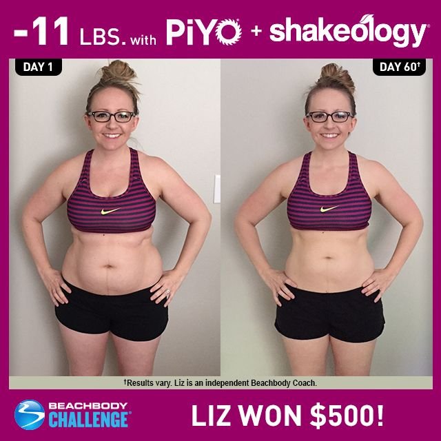 People's PiYo results have been fantastic. We've seen people lose 10 to 15 pounds in 60 days with PiYo and Shakeology, thanks to the rigorous workouts. The sessions push you to perform cardio flows and body-weight exercises, which help you burn calories, tone up, and enhance your flexibility all in 30-60 minutes a day.