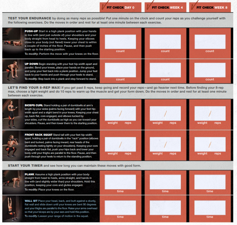 What is this Fit Check that Megan Davies provides? Use this fit check to track your endurance and strength progress. You’ll do this 3 times—before you start Sure Thing, after Week 4, and at the end of the program. You’ll be amazed at how your fitness can improve in 8 weeks!