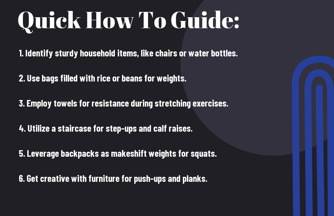 Understanding how to effectively incorporate household items into your workouts will keep your routine fresh and dynamic. Focus on versatility by selecting items like backpacks filled with books for added resistance or towels for bodyweight exercises. This approach allows you to target different muscle groups while ensuring proper form and safety are prioritized. It's also important to challenge yourself by increasing intensity or adding variations as you progress, which keeps you mentally stimulated and physically engaged in your workouts.